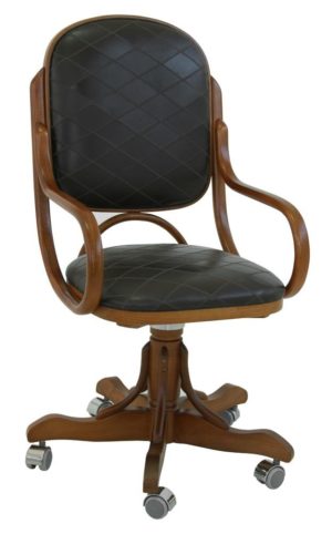 A cadeira giratória com braços e rodízios Gerente possui estrutura em madeira maciça vergada, opção de assento e encosto estofados ou em palha. Com design elegante, é ideal para o seu home office ou escritório.