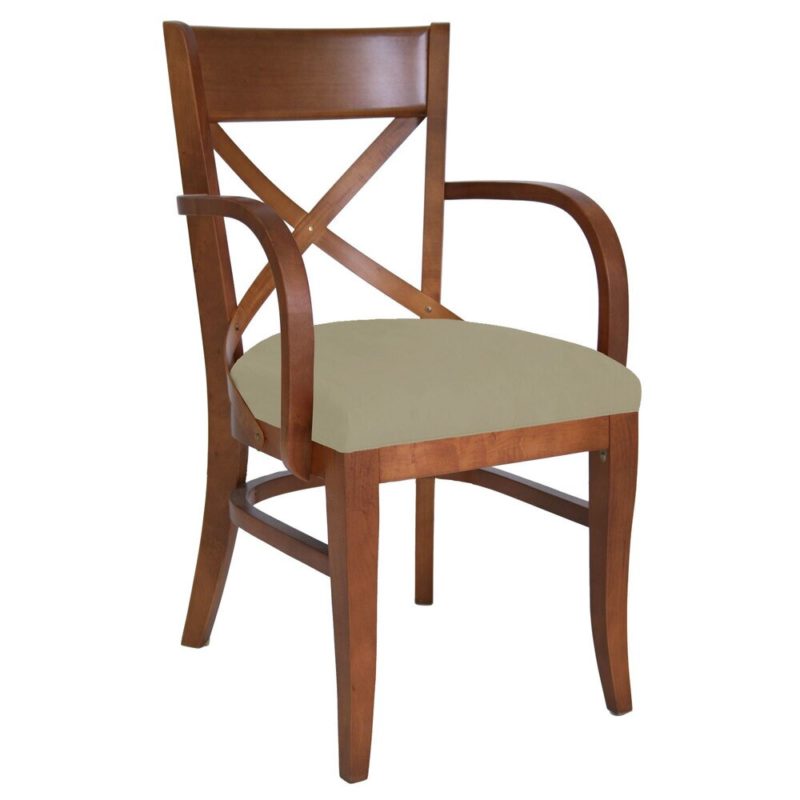 A cadeira com braçoes Itália possui estrutura em madeira maciça vergada e assento estofado. É a peça ideal para compor a sua mesa de jantar, proporcionando todo o conforto e elegância que você merece